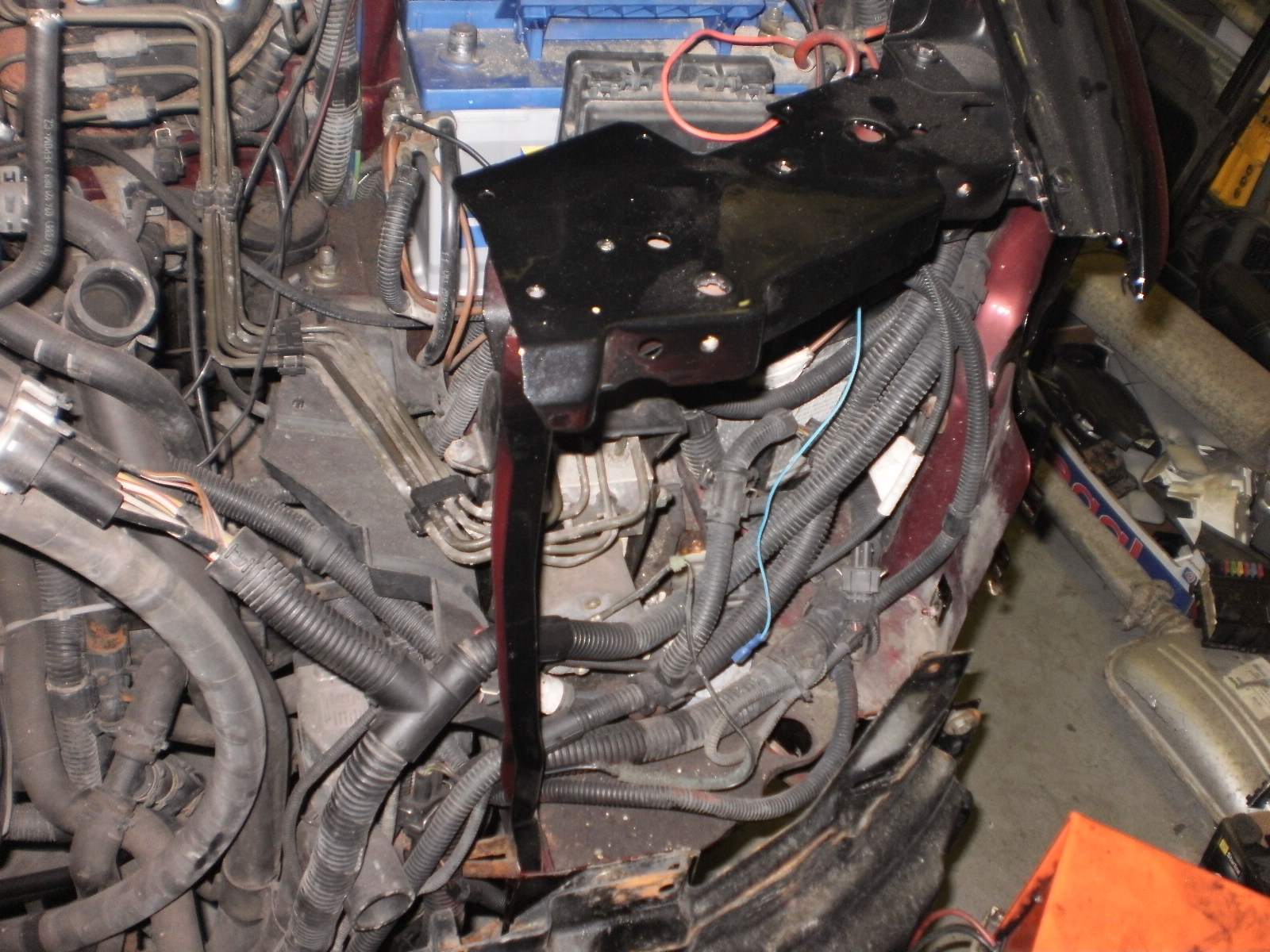 Ještě bych rád upozornil že lepší dát celý nový svazek světelné elektroinstalace,totiž kulatý předek je delší o 15 cm o proti hranatému.Tak že pokud se předělává původní světelná kabeláž z hranatého předku tak je to nejde dát do držáků ve které mají být vedeny svazky elektroinstalace.Na levé světlo to ještě vyjde ale na druhé které je na pravé straně tak je to natažené a jde to to přes chladič a sahary,jelikož je to krátký tak se nedá svazek uchytit do držáků na výstuze nárazníku.