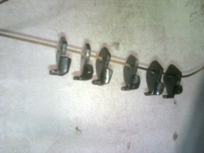 Přišel jsem lacino ;) ke starým loketkám, které měly klasicky ulomený vnější zobáček, takže oprava nutná. Do jedné jsem vložil nový silnější ocelový do drážky, u ostatních jsem vyrobil z válcovaného L úhelníku podložku se zobáčkem a stěnami ohnutými na druhou stranu tak, aby v nich celý odlitek držel. (teď je loketka o 5mm dál od sedačky, ale to snad nebude na závadu)