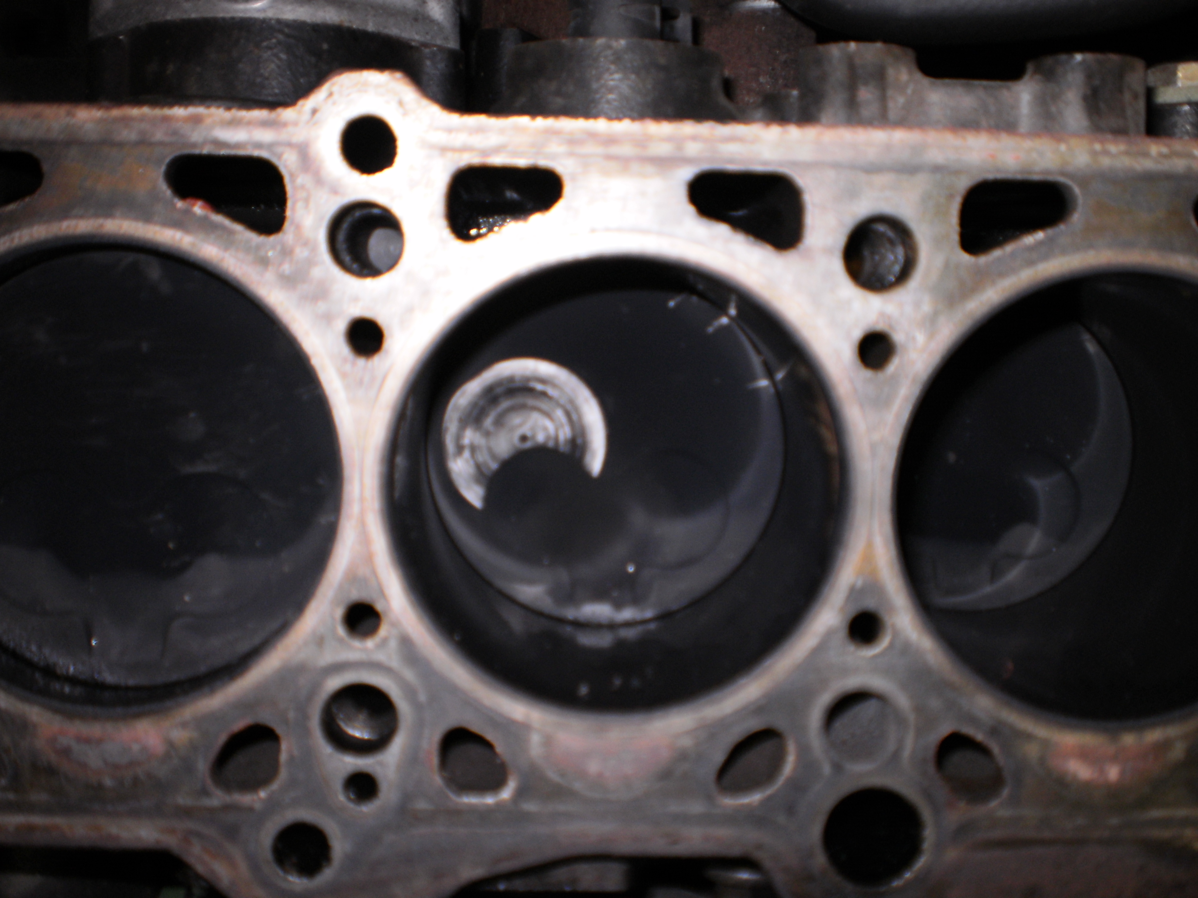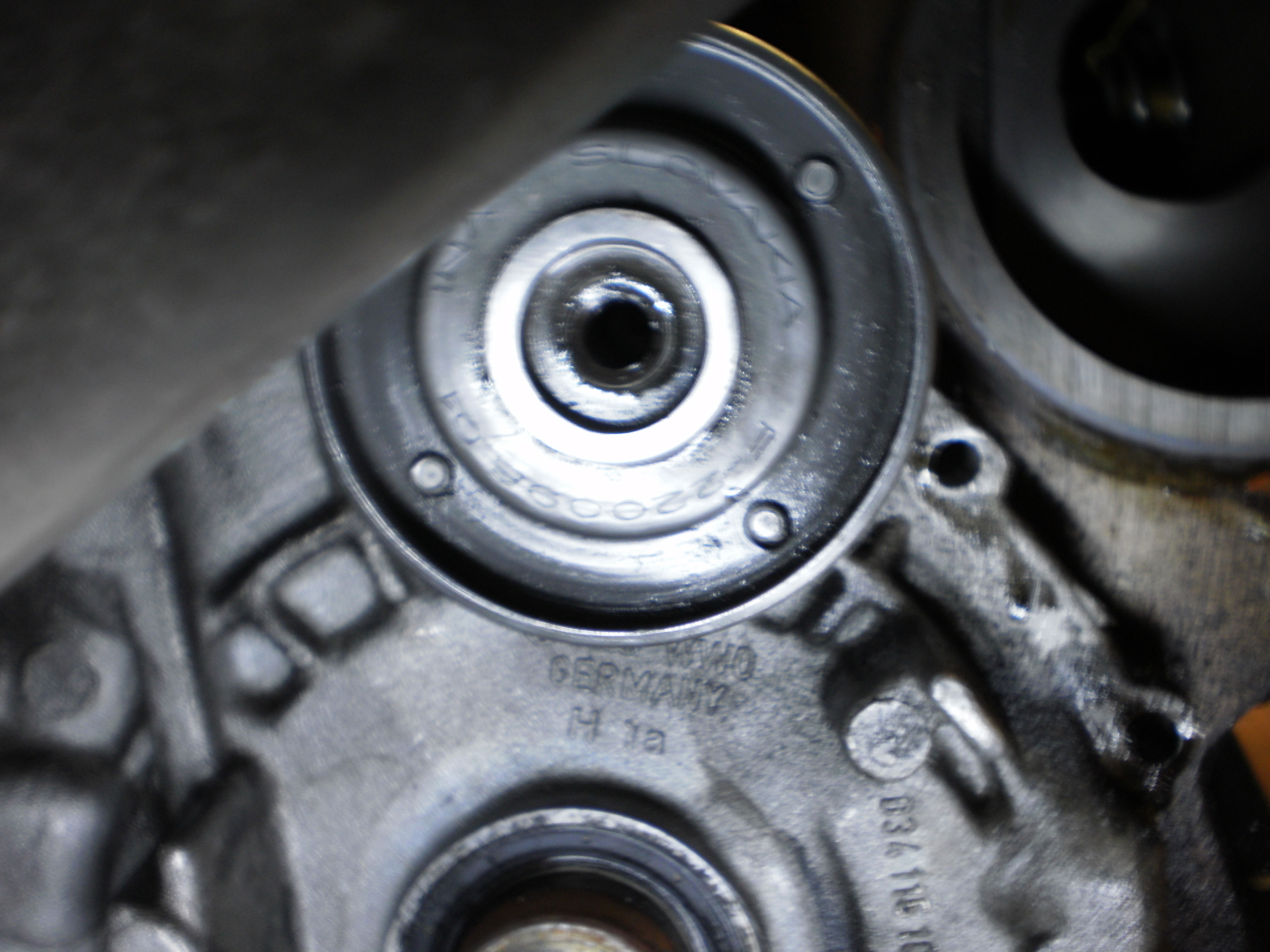 Tam došlo k tomu že v servisu dotahovali vodící(ne napínací)kladku tak důkladně až strhli závit v hlavě motoru a tím že to nebylo dotažené tak jak by mělo a bylo volné tak vodící kladka tahala rozvodový řemen jinam než má být a na druhé straně se povolila vodní pumpa protože pro změnu nebyla dotažená vůbec(vodní pumpou se u tohoto motoru napíná rozvodový řemen)tak to pomalinku přeskakoval řemen až se to potkalo a došlo k takovému poškození jaké je vidět na fotkách.