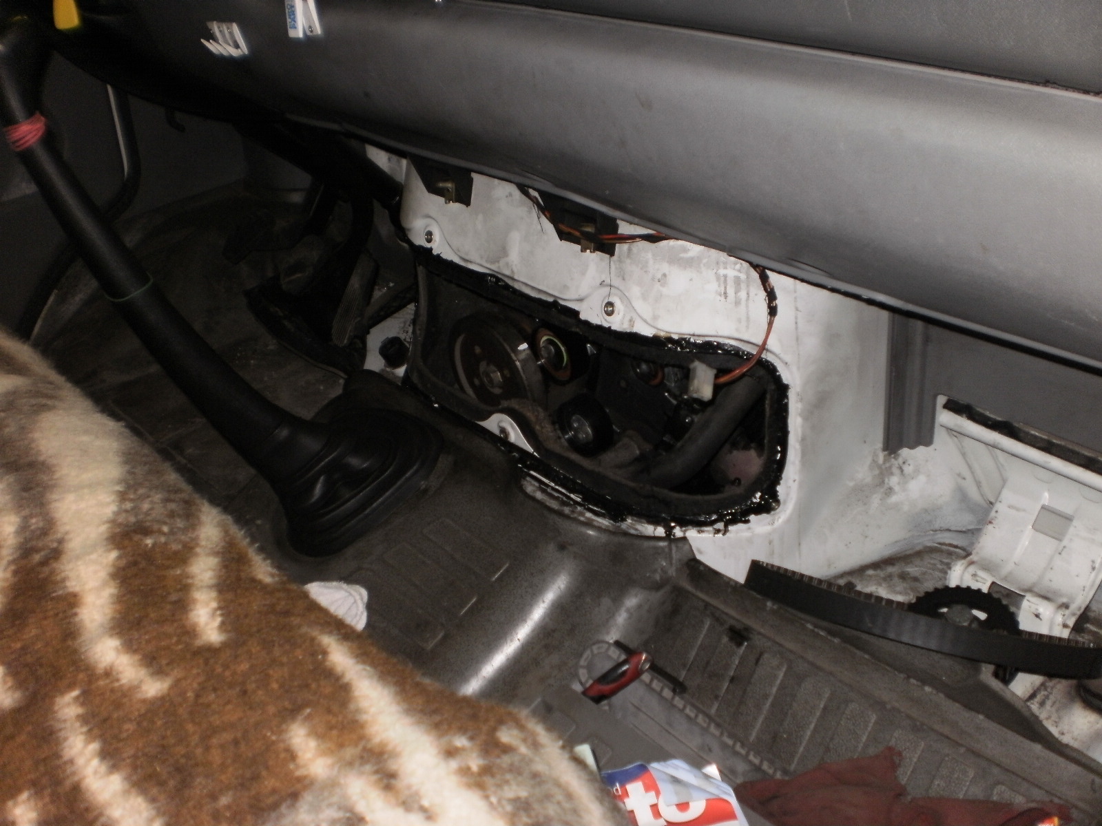 Rozvody u LTčka sou shodné jako u transportera T4 2.5 TDI stejně tak další motorové díly,postup montáže a nastavení je stejné,samozřejmě že rozdíl je v uložení motoru,zatím co v téčku je motor uložen napříč tak v LTčku je uložen podélně.A proto se musí na výmenu kladek a potom na nastavení předvstřiku odšroubovat v kabině řidiče kryt.Foto napoví víc